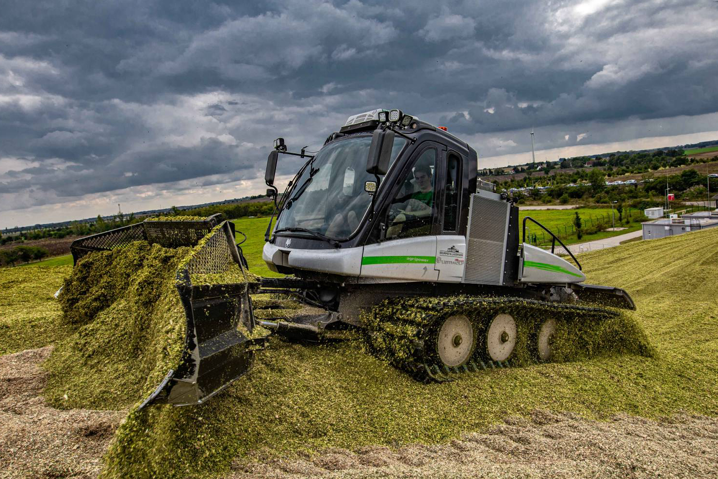 The LEITWOLF AGRIPOWER > is a snow groomer converted specially for agricultural applications. A LEITWOLF for silage use, so to speak. PRINOTH snow groomers > master every terrain – not only in the snow. The PRINOTH solution for Silage combines the know-how of slopes and silos: the unique crawler track system, combined with chassis vibration, achieves maximum silage compaction. The PRINOTH LEITWOLF for silage, together with the field-proven 12-way blade, delivers the perfect working result with top pushing performance. And all this with around 20% less consumption than a conventional tractor.